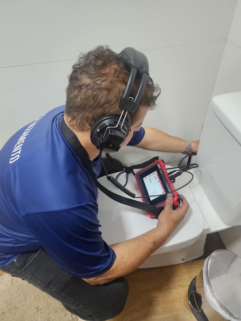 Detecção eletrônica de vazamentos por ultrassom importado e câmera termográfica. Serviços especializados em caça vazamentos de água e gás.